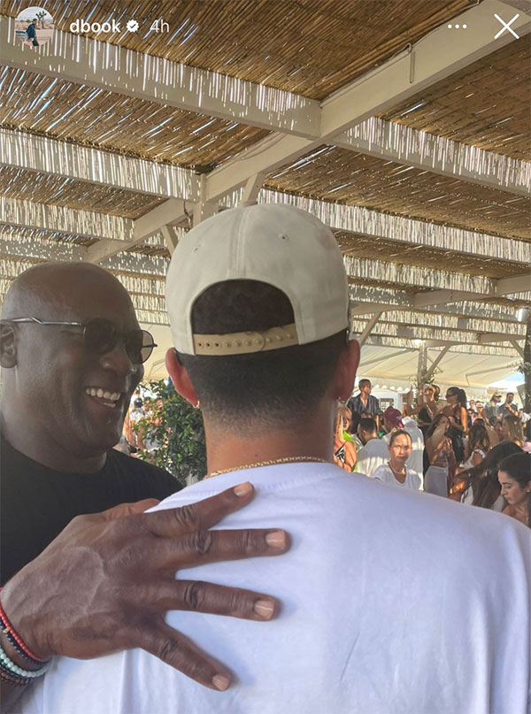 值得一提的是,布克和黄蜂队小老板迈克尔-乔丹一起意大利度假,布克晒两人同框照,乔丹搂着布克咧嘴大笑,现场美女如云,他们应该是一起参加派对。