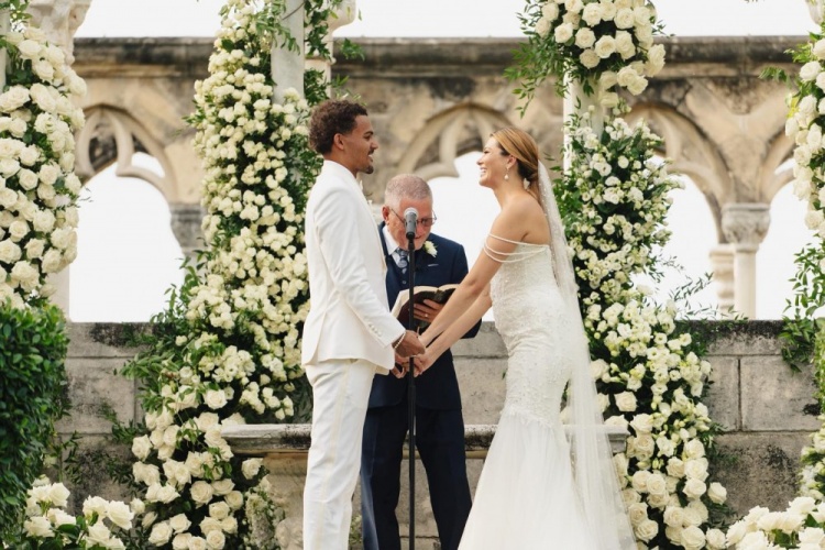 老鹰球星特雷-杨晒结婚照并写道:和一位令人难以置信的新娘度过了梦幻般的一天;詹姆斯留言写道:恭喜你,兄弟。