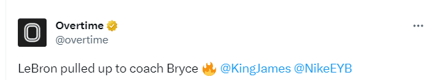据美媒OVERTIME报道,勒布朗今天是来执教布莱斯的;詹指导来了,拿着战术板安排战术,认真执教本场比赛,詹姆斯前队友朗多也在现场。