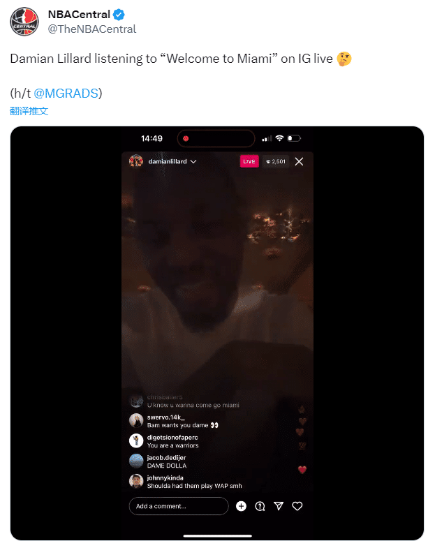 来源:24直播网06-24 10:5624直播网06月24日讯 ,利拉德在派对上直播时听歌,背景音乐是欢迎来到迈阿密;现场有人大笑,利拉德跟着露出笑容,难道利拉德真要加盟热火吗?名嘴列利拉德1换6加盟热火的交易方案,不过开拓者总经理明确表态:没有兴趣交易利拉德。