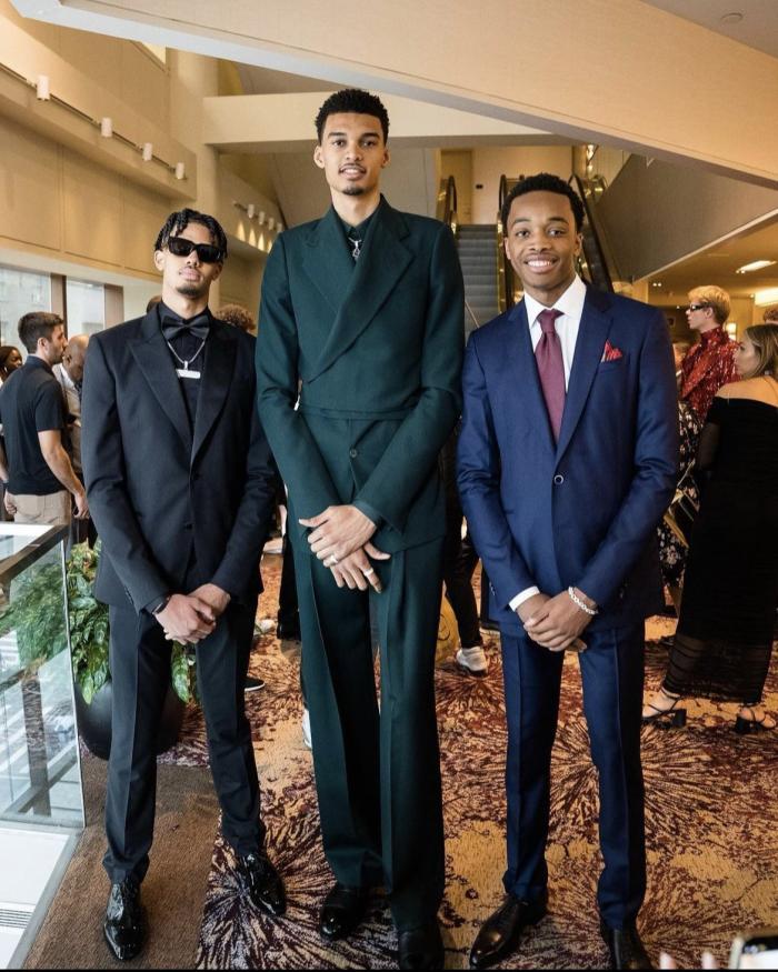 在NBA选秀日,文班亚马身穿一套墨绿色的西装,盛装出席帅气亮相并且与亨德森热聊,还为球迷签名球衣和篮球以及和球迷拍照合影;期间文班亚马接受采访时,他表示进入NBA后最想和杜兰特交手;等到2023年选秀正式开始,最终19岁文班亚马被马刺用状元签选中,现场拥抱家人庆祝并且喜极而泣。