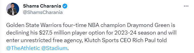 格林拒绝2750万球员选项!勇士新老总发声回应 表态不会交易普尔