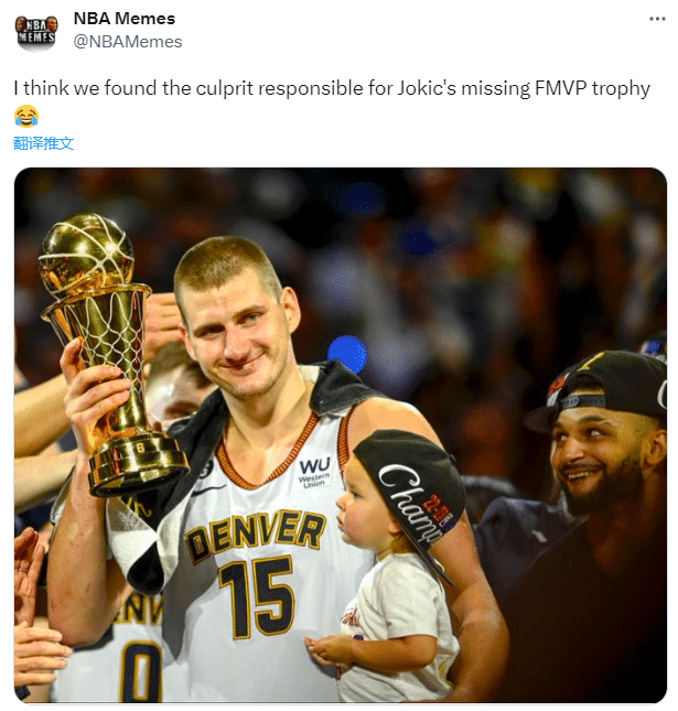 约基奇弄丢了FMVP奖杯:希望他们给我送回家 美媒调侃穆雷偷的