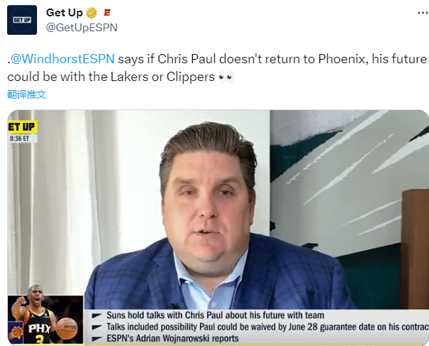 名记Windhorst表示:如果保罗真的被太阳裁掉,我认为他会去湖人或快船。这两队的控卫拉塞尔和威少今年夏天都会成员自由球员。