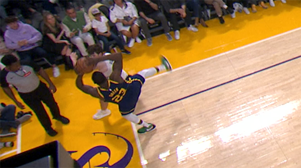 比赛最后时刻,詹姆斯迎着库里命中关键三分球,裁判回放后改判詹姆斯三分踩线不算,老詹找裁判理论也没用;湖人挑战成功后双方跳球,追梦有踩线嫌疑,湖人再次挑战成功,这两次踩线回合,时间过了11分钟而比赛时间只走了3秒。