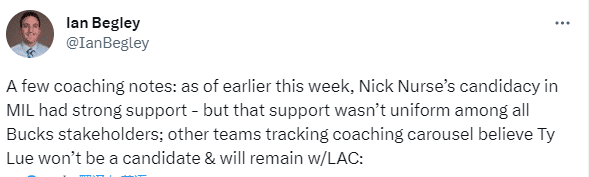 据美记者IanBegley的报道,虽然目前不是所有雄鹿的大股东都在聘请纳斯的事情上意见一致,但雄鹿内部非常支持尼克-纳斯成为球队新任主帅。