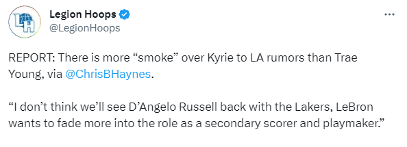 曝拉塞尔不会回归湖人:与詹姆斯的角色存冲突 西决表现堪称灾难