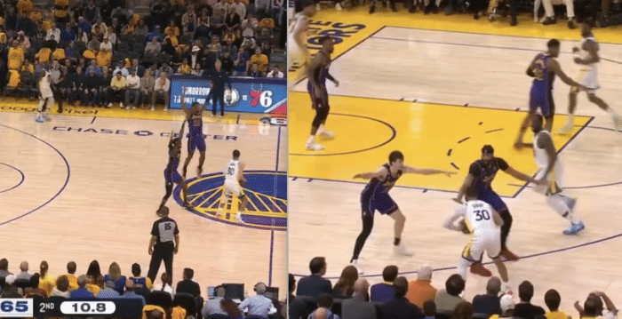 湖人G2的一个重要防守策略就是包夹库里,迫使库里把球传给队友,结果湖人为此付出惨痛的代价;库里犹如魔术师一般,全场送出12次助攻,用一次又一次的精准传球来撕破湖人防线以及助攻队友得分。