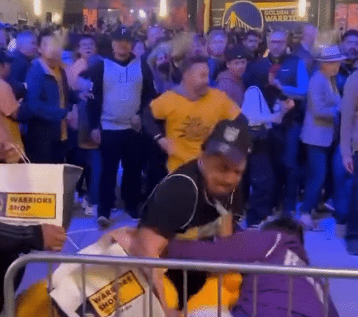 勇士国王两队球迷冲突曝光:挥拳打头上演全武行 勇蜜挨打被揍惨了
