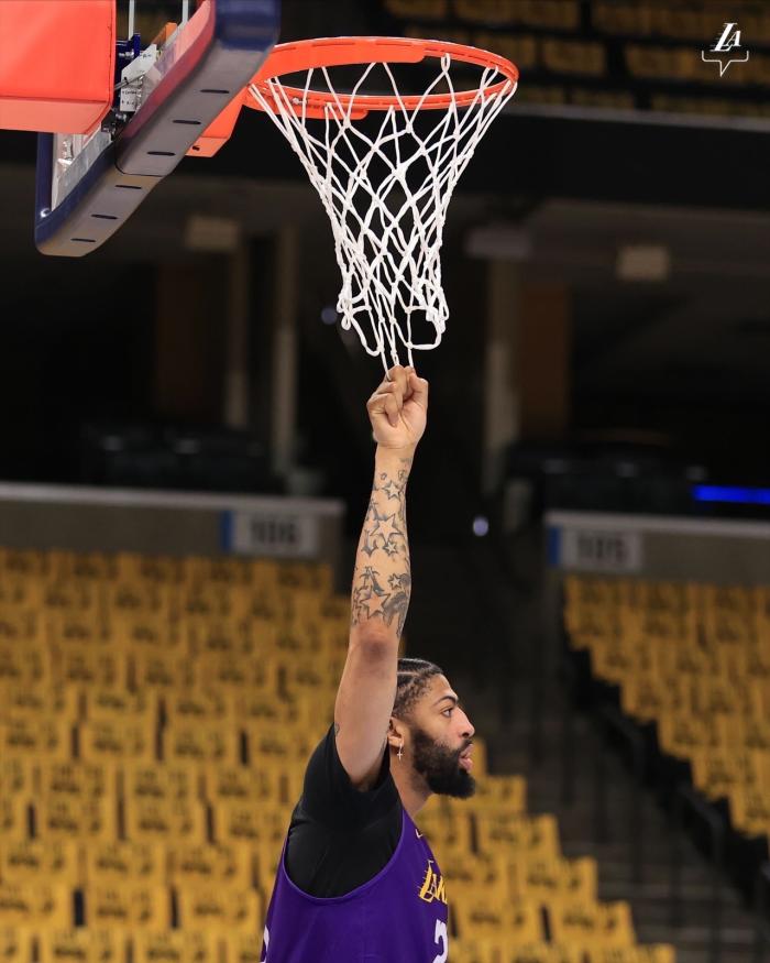 湖人众将专注于G2,浓眉拉拽篮网眼神专注,当八村垒训练三分时,浓眉的大眼睛十分抢镜;八村垒是湖人G1赢球大功臣,替补上场投进5记三分贡献29分6篮板。