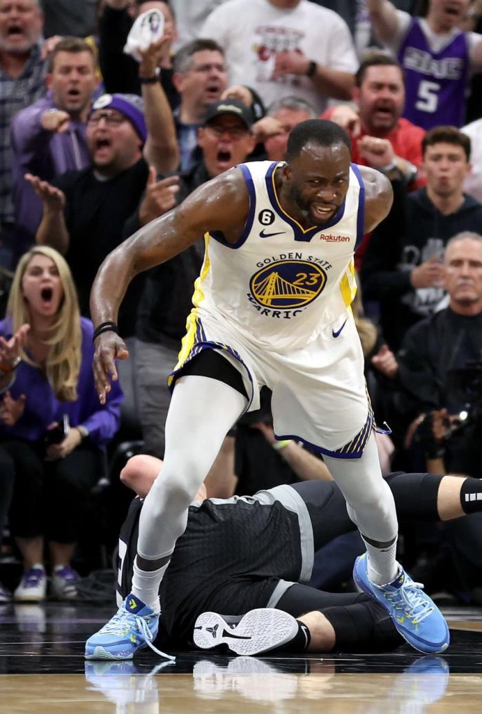 末节7分03秒,小萨博尼斯倒地后抱住格林的右腿,后者睁开脚之后踩踏小萨的腹部,然后跳着跑开;小萨躺在地板上十分痛苦,裁判吹停比赛,第一时间吹罚格林技术犯规;裁判多次回放这一幕,最终升级恶劣二级恶犯,直接被驱逐离场,小萨吃到技犯。