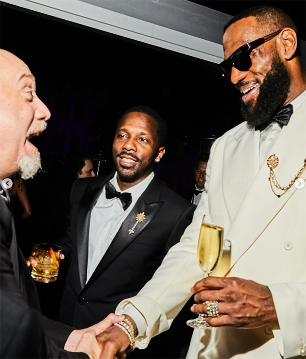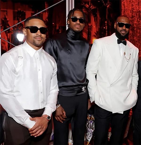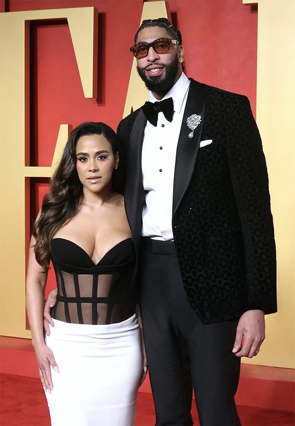 詹姆斯身穿白色礼服、戴着墨镜参加奥斯卡派对,端着香槟尽享派对,詹姆斯的妻子萨瓦娜则是身穿鱼尾礼服亮相;浓眉夫妇也是盛装参加活动,另外湖人球员范德比尔特也来了。