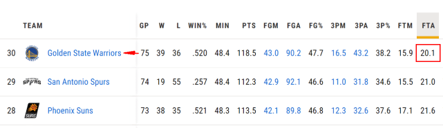专家晒数据揭秘幕后真相:库里和勇士该获得更多罚球吗?