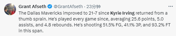 华盛顿打出独行侠生涯最佳一战,32分和5次抢断创独行侠生涯新高;过去3场比赛,华盛顿场均拿到23.7分6篮板3抢断。