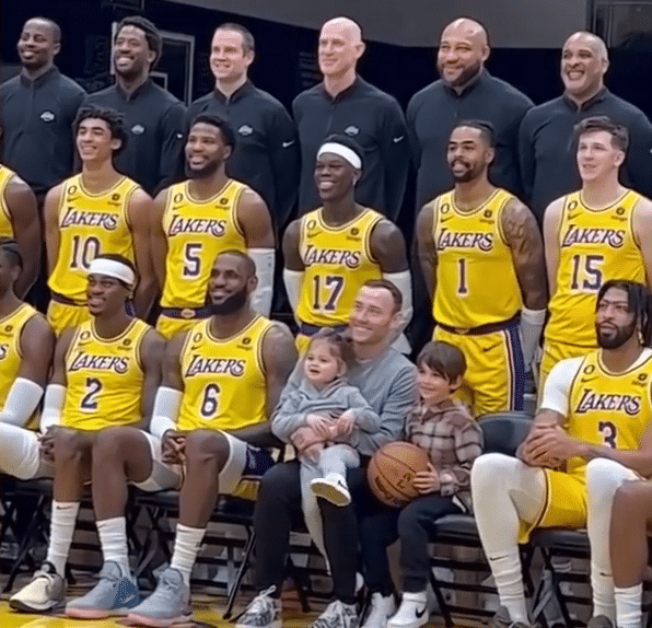 湖人全队大合影出炉:詹皇C位领衔施罗德开怀大笑 浓眉强颜欢笑