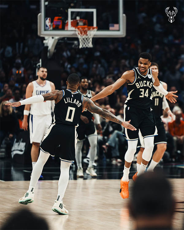 字母哥24投12中、罚球15中10砍下34分10助攻7篮板,雄鹿双巨合砍69分21助攻14篮板双杀快船还连创纪录——1、字母哥和利拉德成为1980年以来第二对单场至少30分10助攻的队友组合;2、字母哥和利拉德成为2023年总决赛G3约基奇和穆雷之后,首对双双砍下至少30分10助攻5篮板的组合。