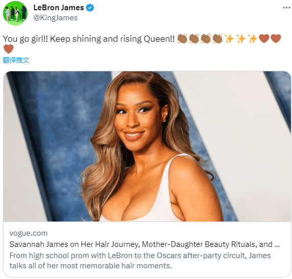 来源:24直播网03-15 12:0024直播网03月15日讯 ,近日,詹姆斯夫妇参加了奥斯卡派对,萨瓦娜更是接受专访,期间萨瓦娜透露詹姆斯喜欢她是金色女郎,因此萨瓦娜经常戴假发参加活动;詹姆斯转发爱妻的专访并且配文写道:继续闪耀和崛起吧,女王!詹姆斯又夸赞爱妻,随队出征客场,比赛期间老詹和拉塞尔疯狂庆祝,将在一周后接受复查。