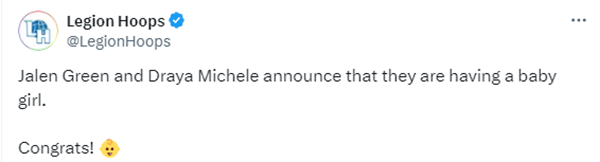 去年休赛期,杰伦和米歇尔一同外出约会的画面引热议,之后外媒曝两人展开了一段恋情;在今年1月份,美媒曾报道过杰伦-格林的女友扎娅-米歇尔怀孕,如今扎娅-米歇尔亲自证实了自己怀孕。