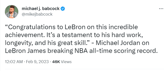乔丹祝贺詹姆斯加冕得分王!美记盛赞38岁超巨:同一夜超天勾+飞人