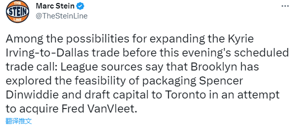 名记Marc Stein跟进报道,篮网已探索了打包丁威迪+选秀权,从猛龙得到范弗里特的可能性。换言之,丁威迪可能再次被交易。