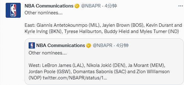 东西部周最佳获提名球员