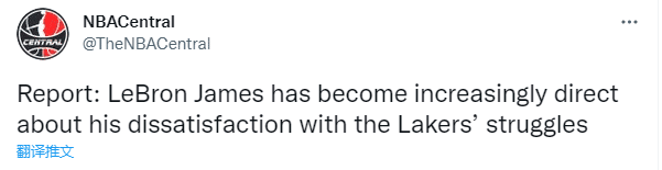 此前湖人输给热火赛后,詹姆斯公开表示他仍旧想要赢球,仍旧想要为总冠军而战,这被视为是詹姆斯向管理层施压以及表达对阵容的不满;不过之后美记爆料除非能够获得争冠级别的球员,否则湖人很可能以现有阵容结束本赛季。