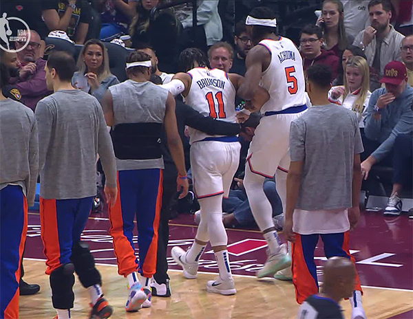 在尼克斯和骑士比赛进行到第一节11分13秒时,布伦森意外受伤倒地——布伦森急停跳投后痛苦倒地,捂着膝盖倒地不起;由于怕倒在场上影响比赛,布伦森忍痛走到场边并再次倒地,本想自己走下场,可膝盖不能用力,最终他被搀扶离场,直接返回更衣室。