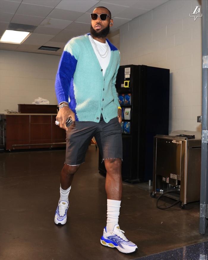 今日客场对阵魔术,詹姆斯确定出战,赛前老詹戴着墨镜、身穿短裤和针织开衫出镜,依旧帅气亮相,究竟老詹能否带队终结连败?拭目以待吧。
