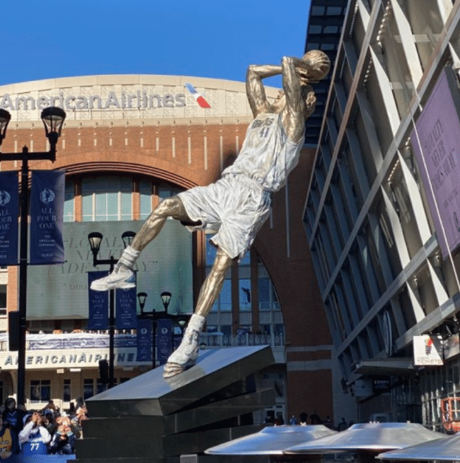 谈到诺维斯基的雕像正式揭幕,詹姆斯表示:我认为德克是史上最伟大的国际球员,我认为他跟吉诺比利是一个档次的,他是个冷血杀手,他彻底改变了4号位的打法,德克非常棒,这毋庸置疑。