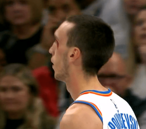 本场比赛,雷霆主力球员波库舍夫斯基不幸受伤,左眼被重击后鲜血直流,可能是眼角被打开了,之后他被迫返回更衣室接受治疗。