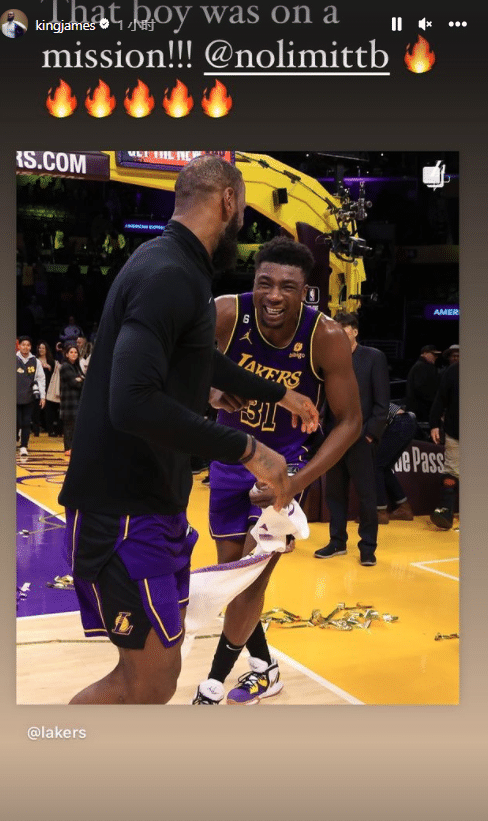 詹姆斯还转发和托马斯-布莱恩特一起庆祝胜利的合影,配文写道:那个家伙已经完成任务。