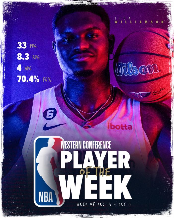 NBA官宣:恩比德场均43+10再夺周最佳 锡安场均33+8生涯首次当选