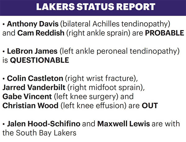 下一场对阵卫冕冠军掘金,詹姆斯因脚踝伤势被列为出战成疑,50%出战可能性,值得一提的是,本赛季至今,老詹大部分时间都被列为可能出战并且最终升级为可以出战;换言之,老詹应该会出战与掘金的比赛,这将是他的伟大里程碑之夜。