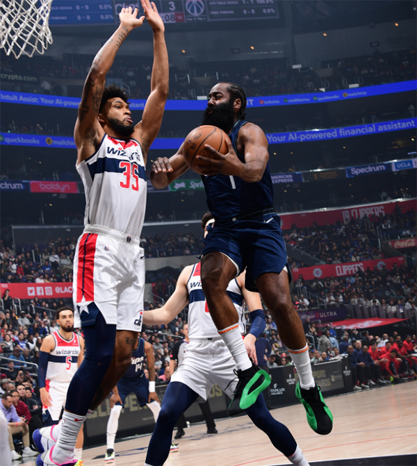 之后哈登再次专注于组织进攻,半场打完快船79-64领先奇才15分;哈登半场11投7中、三分8中5独砍21分6助攻4篮板2盖帽,小卡13分6篮板,乔治17分,快船三大巨星半场合砍51分。