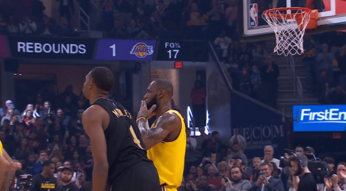 比赛正式开打,湖人第一次进球是詹眉连线,浓眉助攻底线空切的詹姆斯,后者双手暴扣;不过湖人开场被骑士打出10-3攻势,第一个暂停时,骑士在主场播放视频,欢迎詹姆斯回家,在致敬视频中,骑士播放2016年夺冠时刻,对此詹姆斯不仅挥手致意,而且向全场球迷送飞吻,现场球迷则是欢呼、鼓掌。
