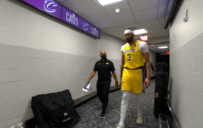 第一节3分多钟,浓眉在篮下和艾伦争抢篮板,之后浓眉被换下场,离场并且径直返回更衣室;浓眉迟迟没有返回替补席,最终湖人官方宣布,浓眉因生病的原因,本场比赛不再回归。