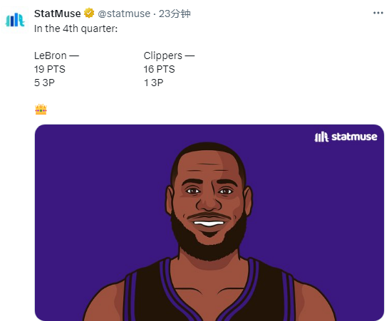 3、詹姆斯末节19分超快船全队(16分)