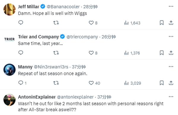 维金斯因个人原因暂时离队引热议,无数球迷表示去年的事情重演了,还有球迷发问:上赛季全明星周末后,维金斯是不是因个人原因缺席了2个月?