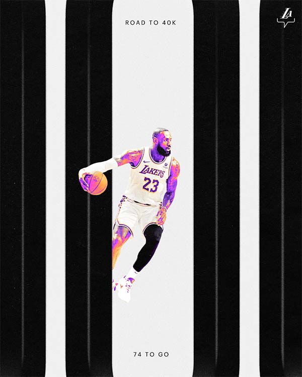 本赛季至今,詹姆斯已经在第21个赛季拿到1274分,这个已经超越联盟历史上所有出战第21赛季球员在该赛季的总得分(1230分);湖人官方晒图预热,詹姆斯距离达成40000分里程碑仅仅只差74分。