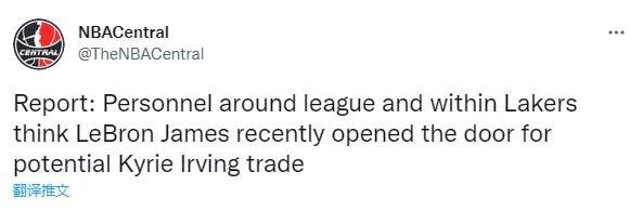 美媒NBACentral表示联盟和湖人内部的人员都认为这打开了欧文交易的大门