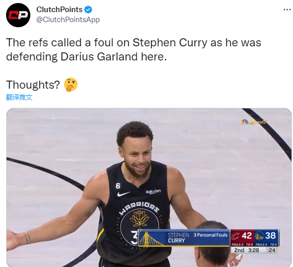 第二节,库里上场后强突滑翔拉杆得分,这进球确实太丝滑,不过库里在防守加兰时吃到本场第三犯,再次被迫下场;格林抱怨吃到技犯时,库里走到场边找裁判理论,为队友抱不平;之后科尔不满裁判吹罚维金斯防守犯规,怒吼裁判吃到技犯。