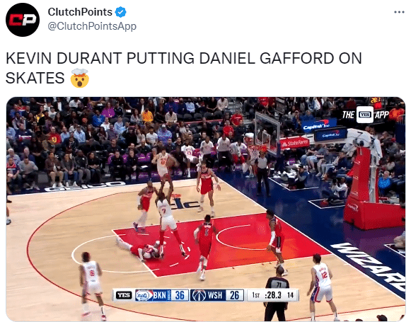 杜兰特晃趴对手太狠:点燃替补席征服客场 篮网官方高呼我的天呐