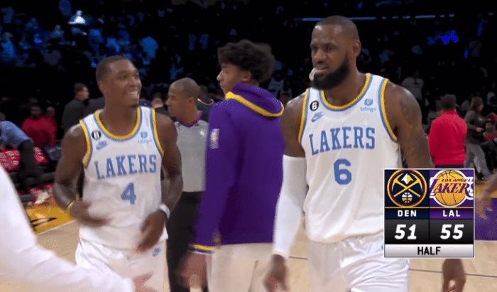 下半场,37岁詹姆斯第三节发力,扛着穆雷杀到禁区上篮得分,碾压小波特打成2+1,迎着戈登干拔中投,詹姆斯连得10分;随后湖人断电,掘金一波7-0扩大领先,此时里夫斯和威少对飚戈登和波普,朗尼-沃克连续得分,里突外投引领18-2超级攻势,三节打完湖人93-85领先掘金8分。