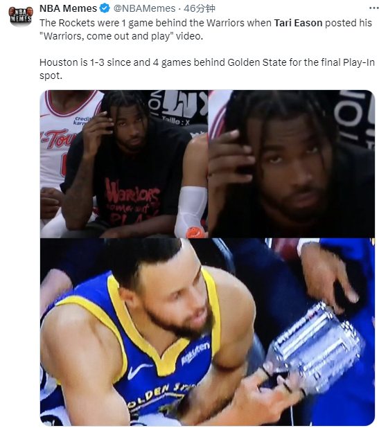 勇士连续四年横扫火箭,库里幽默插瓶,伊森成为笑柄