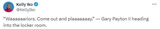 库里插水瓶回击伊森,据火箭记者Kelly Iko报道,勇士球员小佩顿在回更衣室途中,模仿着火箭球员塔里-伊森此前放出的豪言:“勇士,来和我们碰一下啊。