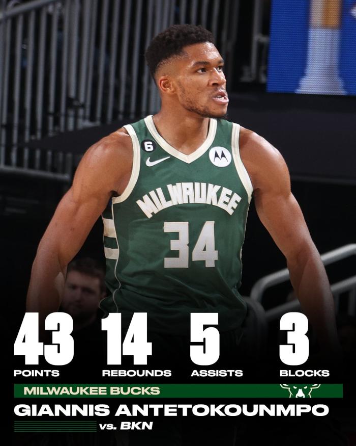 字母哥43+14狂刷多项历史纪录 名嘴:他退役前至少再夺三冠