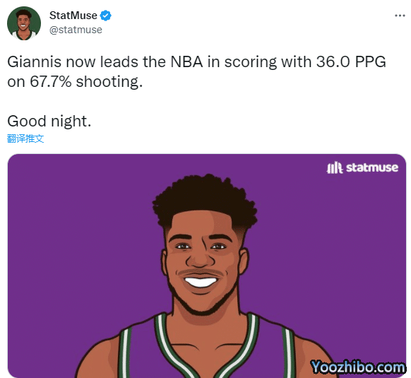 4、到目前为止,字母哥场均36分领跑联盟得分榜,投篮命中率高达67.7%
