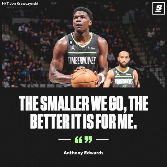 而爱德华兹在3天前的一番采访中,也有貌似针对唐斯的言论。当时爱德华兹表示,“我们所打的阵容越小,对我来说越好。”事实也确实如此,当爱德华兹跟麦克劳林、诺威尔、普林斯、里德同时在场时,他的发挥更出色,而当他和唐斯、戈贝尔同场时,有些施展不开。