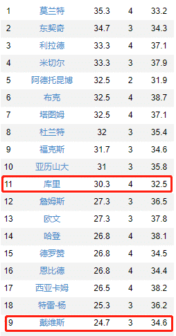 欧文也是场均27.3分,德鲁大叔找到了进攻节奏,表现比上赛季更出色。哈登和德罗赞、恩比德场均26.8分,他们也是各自球队的绝对核心,而西亚卡姆、特雷杨和戴维斯也都进入得分榜前20位。值得一提的是,浓眉哥场均能砍下24.7分,只能排在第19位,在10-11赛季,杜兰特场均27.7分就能获得得分王,如果放在现在,能进前15名就算不错了。
