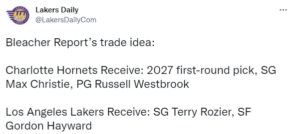 美媒《露天看台》列出多笔与威少有关的交易方案,建议湖人送走威少和两个首轮签换来特纳和希尔德;建议湖人通过交易换来马刺队的麦克德莫特和理查德森,换来爵士队的克拉克森和比斯利,美媒还建议湖人送走威少、克里斯蒂和2027年首轮签,从黄蜂得到罗齐尔和海沃德。
